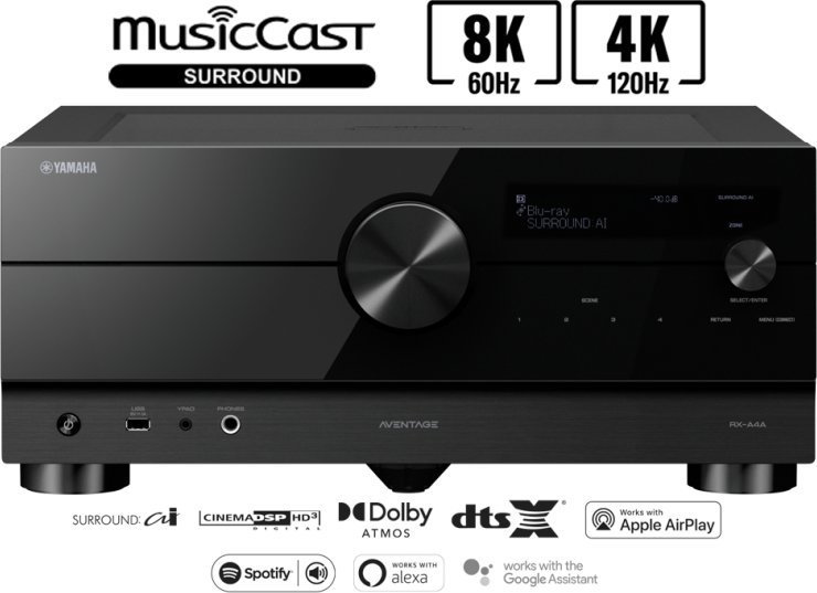 Konfiguracja amplitunera Yamaha RX-A4A jest niezwykle prosta dzięki aplikacji MusicCast, która umożliwia łatwe zarządzanie urządzeniem z poziomu smartfona. Dodatkowo, amplituner obsługuje sterowanie głosowe za pomocą asystentów Alexa i Google, co zapewnia wygodę użytkowania.