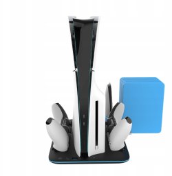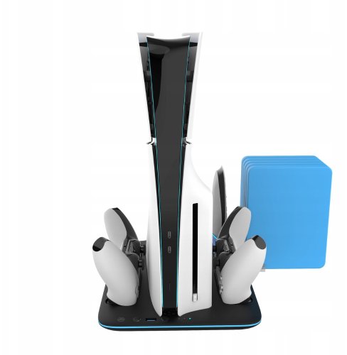 YAXO Podstawka chłodząca i ładująca ICE STORM to nowoczesne akcesorium, które łączy w sobie trzy kluczowe funkcje: skuteczne chłodzenie konsoli, szybkie ładowanie kontrolerów oraz organizację akcesoriów. Dedykowana konsolom PS5 Slim, zarówno w wersji Blu-Ray, jak i Digital, podstawka obsługuje kontrolery DualSense oraz DualSense Edge, co czyni ją idealnym rozwiązaniem dla każdego zapalonego gracza.
