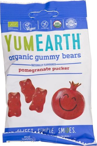 YumEarth żelki w kształcie misiów o smaku pysznego granatu. Dobry wybór, gdy masz ochotę na coś słodkiego.