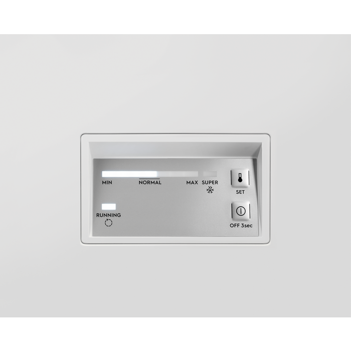 Skrzyniowa zamrażarka Electrolux LCB1AF10W0 posiada elektroniczny układ sterowania. Za pomocą dogodnie umiejscowionych przycisków można precyzyjnie regulować niektóre parametry techniczne, w tym najważniejszy, a więc temperaturę. Jej zmianę oraz ustalenie jednego poziomu umożliwia termostat. Czytelny panel LCD pozwala natomiast na bieżąco kontrolować wybrane ustawienia i daje pewność co do ich dokładnej wartości. Poza tym wskazuje, jakie dodatkowe funkcje są w danej chwili aktywne.