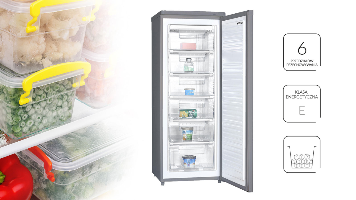 Zamrażarka szufladowa MPM-159-ZS-21 to znakomity wybór, jeśli chcemy dłużej przechowywać żywność w optymalnych warunkach. Działa w klasie energetycznej E, posiada aż 6 przedziałów przechowywania i specjalny pojemnik do wytwarzania lodu kostkowego.