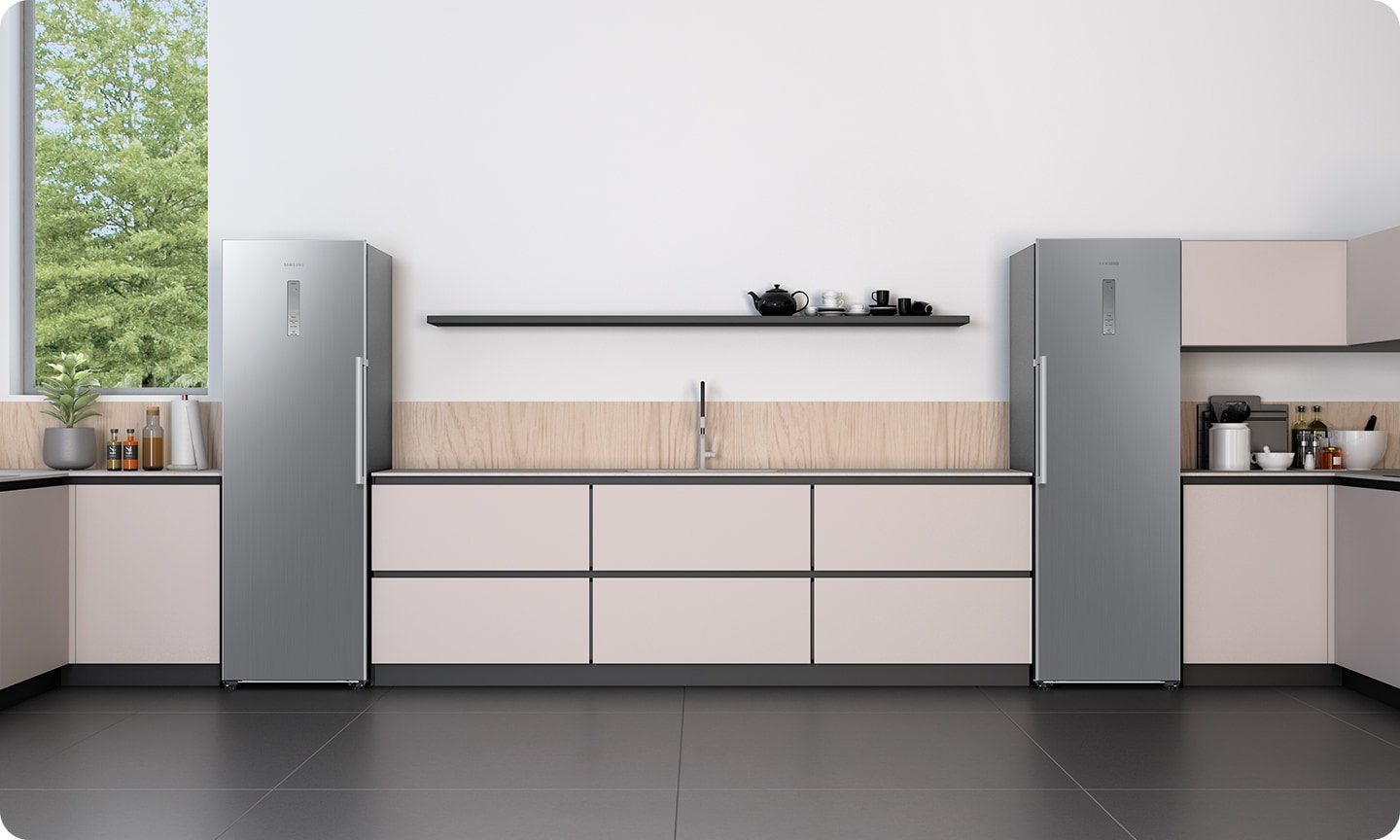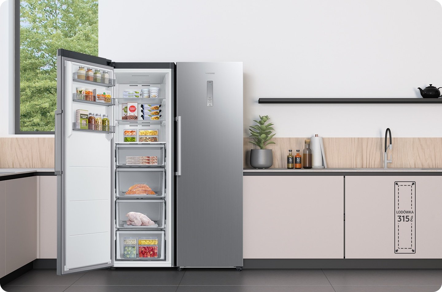 Urządzenie posiada dużą pojemność, ale pozostaje dopasowane do głębokości szafek kuchennych. Wzornictwo Cabinet Fit harmonijnie wpasuje się w Twoją kuchnię. Oferuje mnóstwo miejsca na przechowywanie cotygodniowych zakupów spożywczych i znacznie ułatwia porządkowanie produktów, byś mógł szybko znaleźć i wyjąć to, co potrzebne.