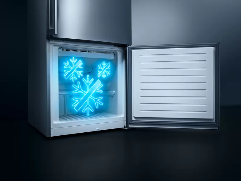 Ręczne rozmrażanie chłodziarki może być bardzo uciążliwe i czasochłonne. Dzięki naszym chłodziarko- zamrażarkom z funkcją noFrost, można na dobre skreślić tę czynność ze swojej listy zadań. Równomierny obieg suchego zimnego powietrza zapobiega tworzeniu się lodu w całym wnętrzu chłodziarko-zamrażarki. W rezultacie na tylnej ściance lodówki nie gromadzi się lód, a szuflady zamrażarki można zawsze łatwo otwierać i zamykać bez warstwy lodu. Technologia noFrost nie tylko zapobiega powstawaniu lodu, ale również eliminuje potrzebę ręcznego rozmrażania.