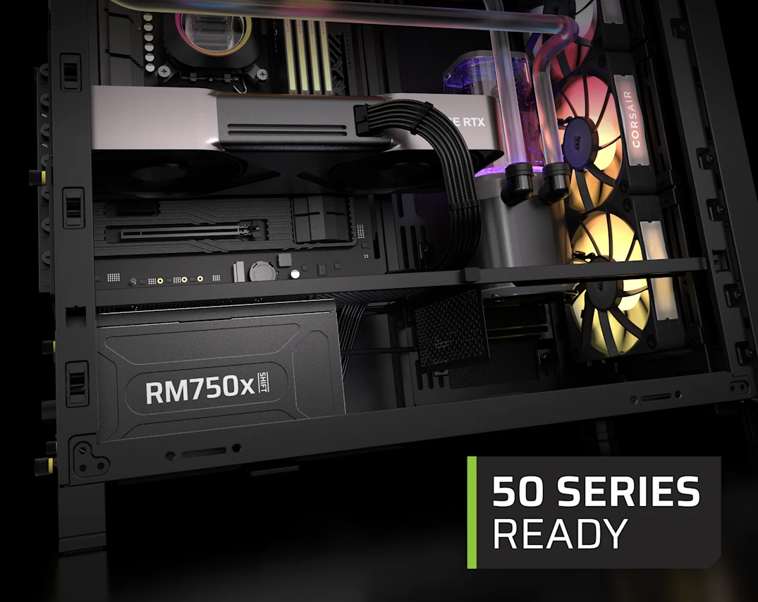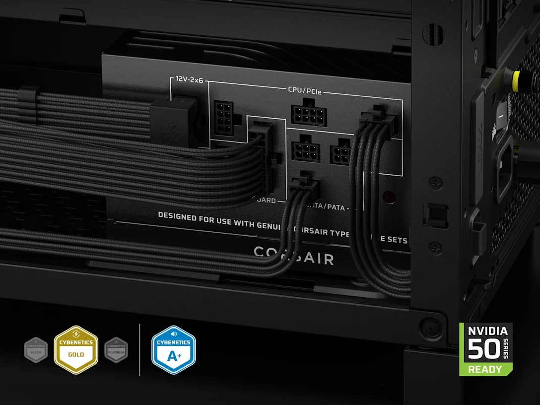 Seria RMx SHIFT 2025 została zaprojektowana z myślą o przyszłości i obsłudze najbardziej wymagających komponentów, takich jak karty graficzne NVIDIA GeForce RTX serii 50. Zasilacz wyposażono w natywny przewód 12V-2x6, który posiada specjalne dwukolorowe złącze ułatwiające wizualną weryfikację poprawnego wpięcia kabla. Zgodność ze specyfikacją ATX 3.1 gwarantuje odporność na nagłe skoki poboru mocy i stabilność napięć w każdych warunkach. Wykorzystanie topologii LLC z przetwornicą DC-DC dodatkowo podnosi efektywność energetyczną całego układu.