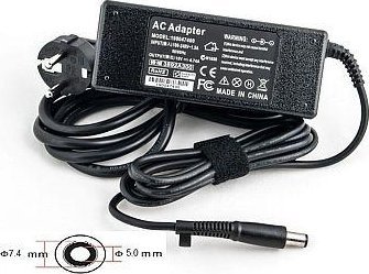 Ten model zasilacza jest zgodny z wieloma laptopami HP, w tym z serią Compaq Business Notebook oraz Pavilion. Wymiary złącza 7.4 x 5 mm z pinem wewnętrznym sprawiają, że jest to uniwersalne rozwiązanie dla różnych modeli, co zwiększa jego funkcjonalność.