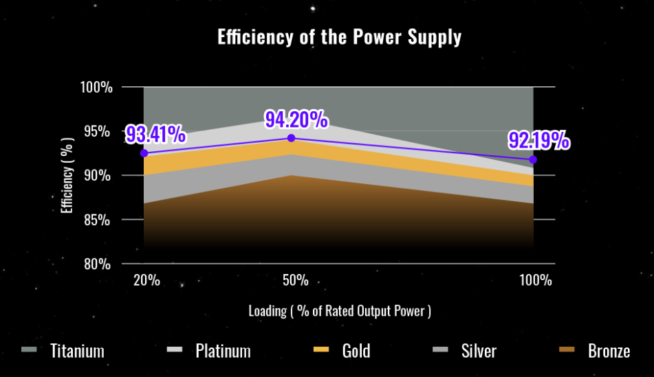 PlatiGemini posiada certyfikat 80 PLUS® PLATINUM, zapewniający sprawność do 94% przy typowym obciążeniu i sprawność do 76% przy obciążeniu 2%. Celem ENERMAX jest tworzenie bardziej ekologicznego środowiska poprzez budowanie wysokowydajnych zasilaczy generujących mniej strat energii, a PlatiGemini jest w stanie zapewnić niespotykaną dotąd konwersję o wysokiej wydajności, jednocześnie redukując niepotrzebne ciepło, aby poprawić niezawodność i dłuższą żywotność systemu.