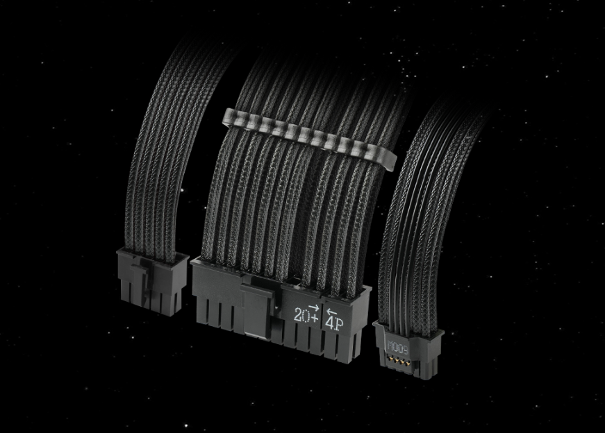 Kable zasilające zostały zmodernizowane i wyposażone w najwyższej jakości kable z siatką, aby zapewnić lepsze prowadzenie kabli dzięki miękkim i wyginanym punktom zapewniającym niezwykłe zarządzanie kablami. Dołączony 27-częściowy zestaw grzebieni do kabli zapewnia dobre zarządzanie kablami i porządek.