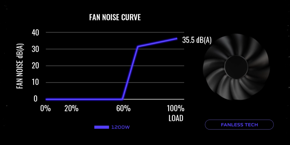 Wbudowana optymalna technologia półwentylatorowa pozwala na zatrzymanie wentylatora aż do osiągnięcia 60% obciążenia roboczego lub nadmiernej temperatury. Tryb bez wentylatora poprawi ogólną akustykę systemu, redukując hałas wentylatora, gdy zapotrzebowanie na chłodzenie jest niskie, jednocześnie zmniejszając moc zużycie energii i koszty operacyjne w czasie.