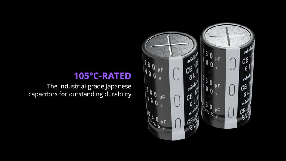 Oferując naszym klientom to, co najlepsze, REVOLUTION D.F. X wykorzystuje w 100% japońskie kondensatory klasy przemysłowej, aby zapewnić wyjątkowo stabilną i niezawodną moc wyjściową przez lata.