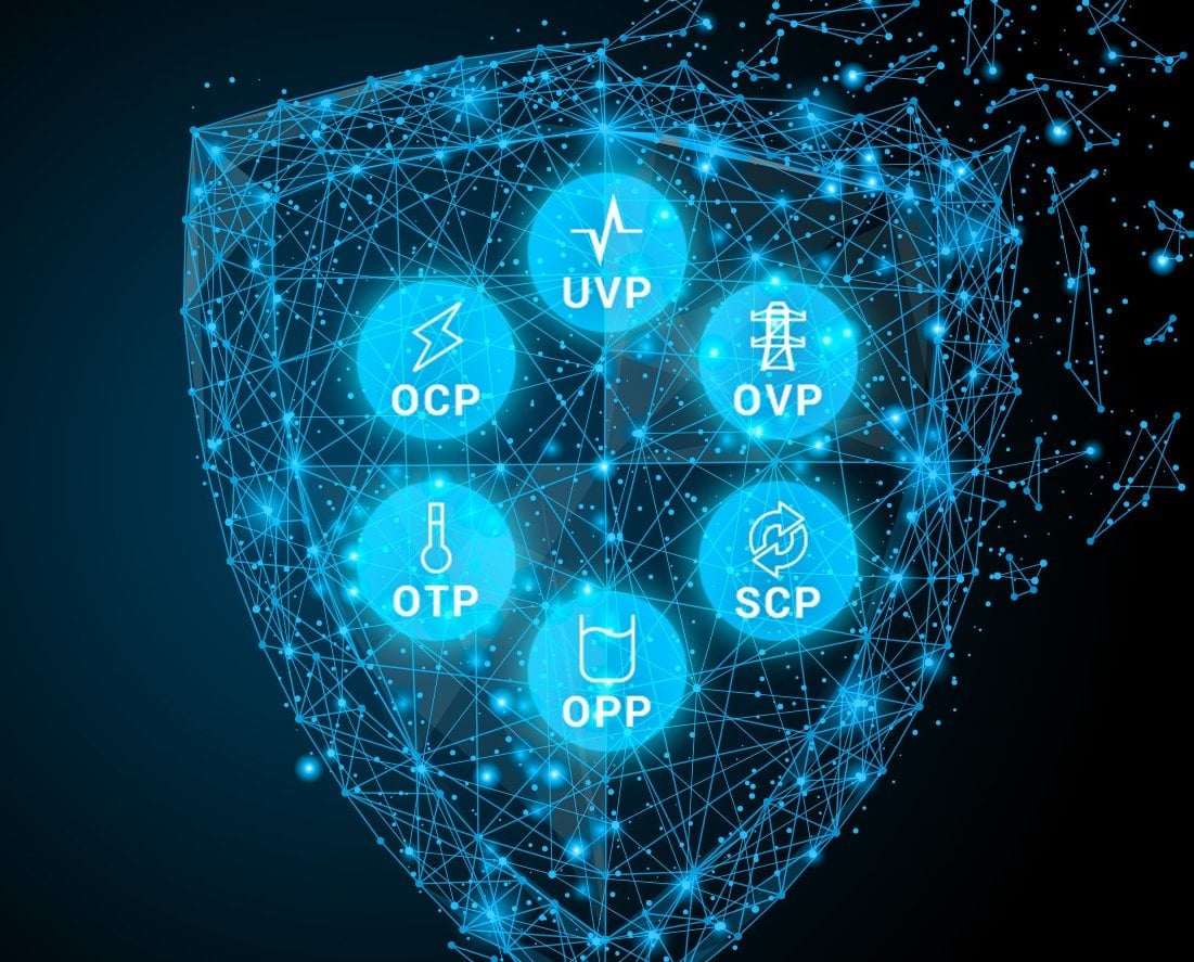 Zabezpieczenia przepięciowe (OVP), przed zbyt niskim napięciem (UVP), nadprądowe (OCP), przeciwprzeciążeniowe (OPP), przeciwzwarciowe (SCP) i termiczne (OTP) zapewniają pełną ochronę obwodów, a tym samym ochronę sprzętu użytkownika.