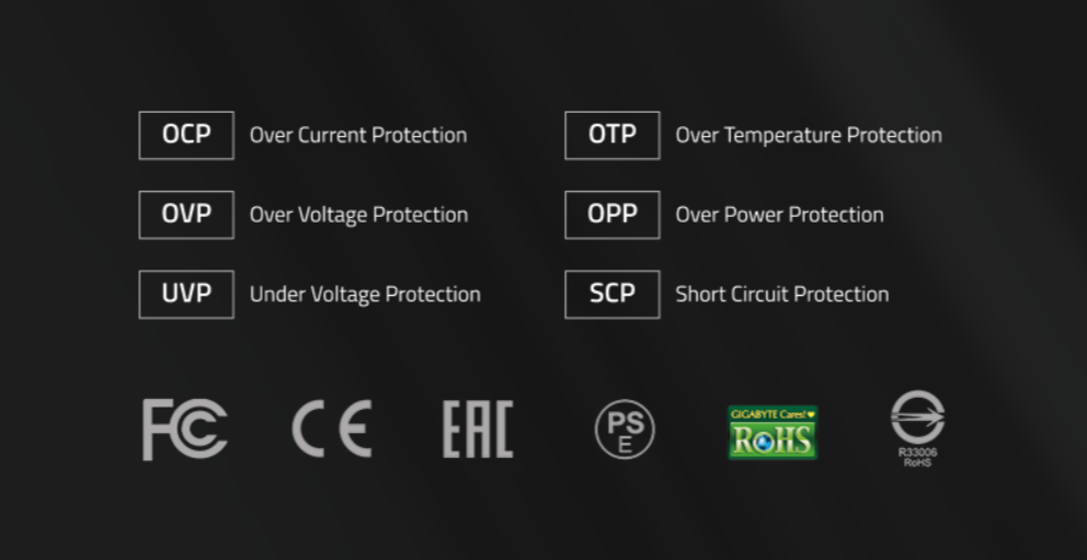 Bezpieczeństwo komponentów komputerowych jest kluczowe, a zasilacz GIGABYTE P650G PCIE 5.1 jest wyposażony w szereg zabezpieczeń, które chronią sprzęt przed uszkodzeniami. Zasilacz jest chroniony przed przepięciami (OVP), niedoborami napięcia (UVP) i przeciążeniami (OPP). Dodatkowo, posiada ochronę przed zwarciami (SCP), nadmiernym prądem (OCP) oraz przegrzaniem (OTP). Taki kompleksowy system zabezpieczeń zapewnia spokój ducha i gwarantuje, że podzespoły Twojego komputera są zawsze bezpieczne.