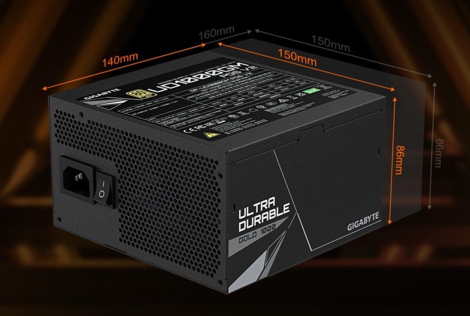 Wykorzystując swoje doświadczenie w rozpraszaniu ciepła i doborze materiałów, GIGABYTE zmniejszył długość zasilacza do zaledwie 140 mm. Taka kompaktowa konstrukcja maksymalizuje wydajność, jednocześnie zapewniając kompatybilność nawet z najmniejszymi obudowami o ograniczonej przestrzeni. Dzięki temu zasilacz idealnie pasuje do mniejszych systemów, co daje większą swobodę w doborze podzespołów i planowaniu ich rozmieszczenia. Minimalistyczne wymiary nie wpływają na jego wydajność, ale na uniwersalność w zastosowaniu.
