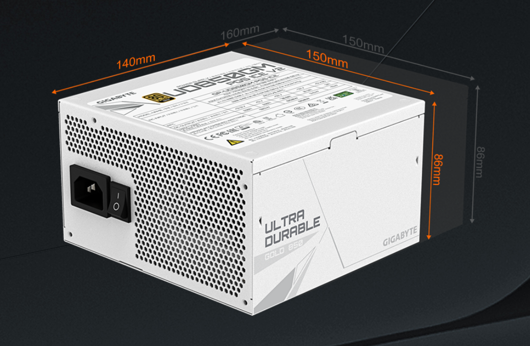 Wykorzystując swoje doświadczenie w rozpraszaniu ciepła i doborze materiałów, GIGABYTE zmniejszył długość zasilacza do zaledwie 140 mm. Taka kompaktowa konstrukcja maksymalizuje wydajność, jednocześnie zapewniając kompatybilność nawet z najmniejszymi obudowami o ograniczonej przestrzeni. Dzięki temu zasilacz idealnie pasuje do mniejszych systemów, co daje większą swobodę w doborze podzespołów i planowaniu ich rozmieszczenia. Minimalistyczne wymiary nie wpływają na jego wydajność, ale na uniwersalność w zastosowaniu.