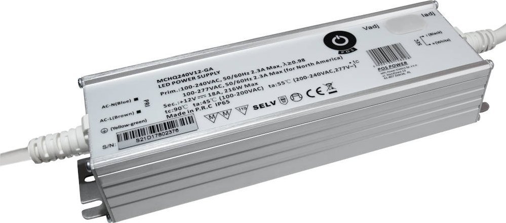 zasilacz LED 12V/18A CV, metal case, PFC, Universal AC input (max 305VAC), Uo/Io adjustable