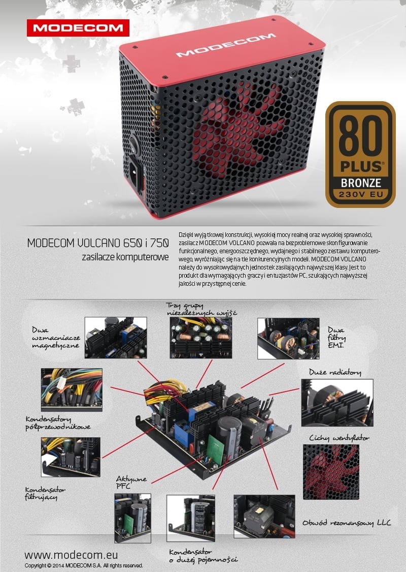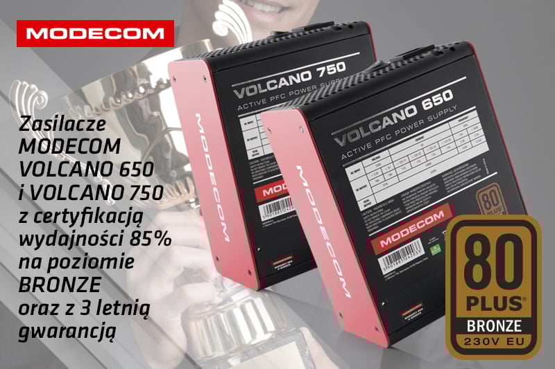 Mam tego Modecoma 750W 80 Plus Bronze - ale wziąłem go tylko dlatego, że zdarzyła mi się sytuacja awaryjna kiedy po prostu muszę przetestować nowo-otrzymany sprzęt a inny zasilacz trafił mi się wadliwy, w sklepie nie było akurat innego modelu - i niestety temu Modecomowi napięcia skaczą jak nie przymierzając pannica na dyskotece...w życiu bym mu nie powierzył obsługi solidnego gpu. Zamówiłem inny zasilacz dobrej firmy i gdy tylko przyjdzie to ten Modecom ląduje na półce. Niestety moja opinia o tej firmie pozostaje niezmieniona daleko mu choćby do takich firm jak OCZ, które ostatnio miałem przez kilka lat i napięcia co najwyżej delikatnie drgały, w tym Modecomie jest istna dyskoteka.