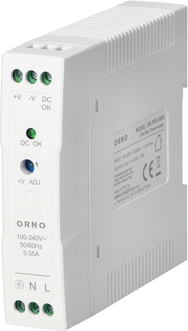 Zasilacz przemysłowy, na szynę DIN, 24VDC, 1A, 20W, w plastikowej obudowie