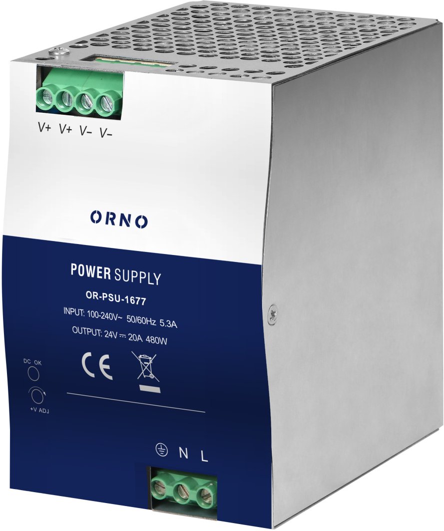 Zasilacz przemysłowy, na szynę DIN, 24VDC, 20A, 480W, w metalowej obudowie