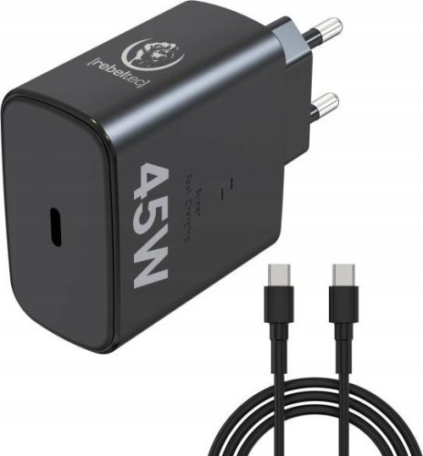 Zasilacz Rebeltec Zasilacz PD45W USB-C uniwersalny do notebooków, smartphonów, tabletów, power banków i innych urzšdzeń z gniazdem zasilajšcym USB-C.