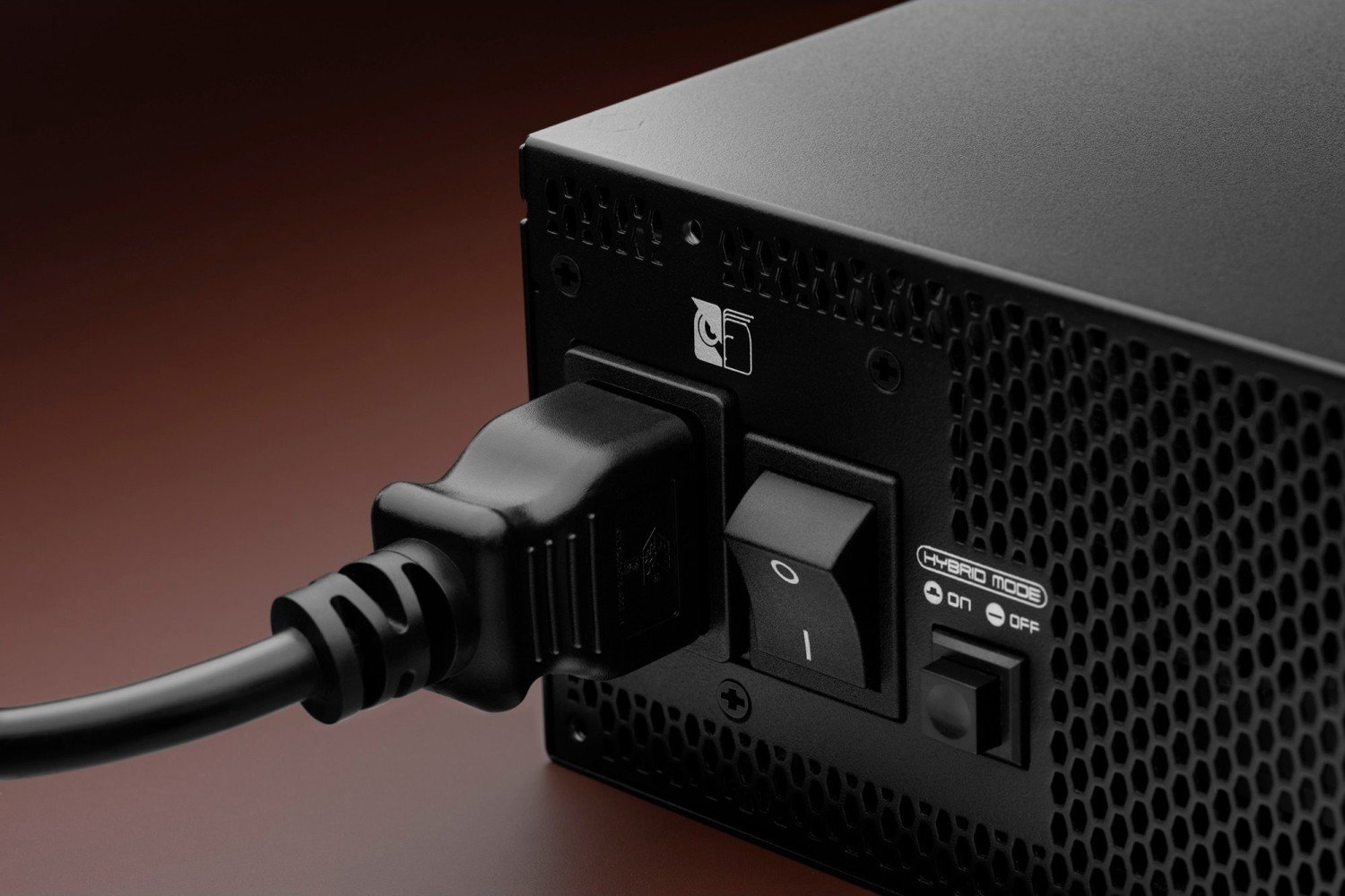Zasilacz wykorzystuje również inteligentny system kontroli wentylatora, który dostosowuje prędkość obrotową do aktualnego obciążenia. W trybie półpasywnym, przy niskim zapotrzebowaniu na moc, wentylator całkowicie się zatrzymuje, zapewniając absolutną ciszę.