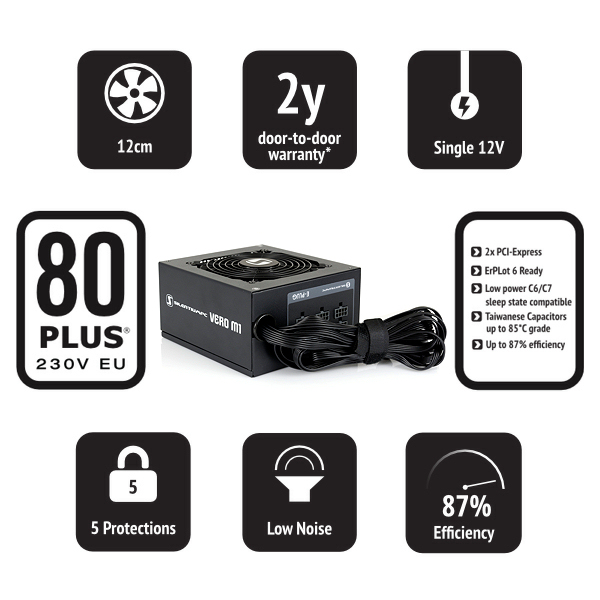 Vero M1 600W to zasilacz stworzony dla nowoczesnych zestawów komputerowych z pojedynczą kartą graficzną. Zgodnie z aktualnymi trendami zasilacz ten posiada bardzo mocną linię 12V oraz oficjalny certyfikat Ecova 80 PLUS® Standard 230V EU.