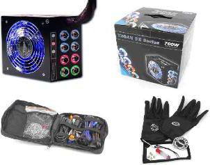 | Informacje dodatkowe | AKTYWNE PFC HDD (molex) x 3, 1 x FDD, EPS,4x SATA, 2x PCI Express, SLI kabel uziemiający, pozłacane styki Odłączane kable przeciążeniu oraz przeciw spieciami (OVP,OCP,SCP) uniwersalne wejscie 95-250 VA włącznik główny z osłoną gumową zabezpiecznie przeciw przepięciowe |