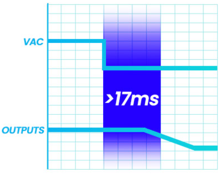 Podczas przerwy w zasilaniu komputer może się wyłączyć lub uruchomić ponownie. Dbamy o to, aby seria GF3 ARGB zapewniała co najmniej 17 ms przy 100% obciążeniu, bez ponownego uruchamiania lub resetowania systemu. Gwarantujemy, że seria GF3 ARGB zapewni co najmniej 17 ms przy 100% obciążeniu, bez ponownego uruchamiania lub resetowania systemu.