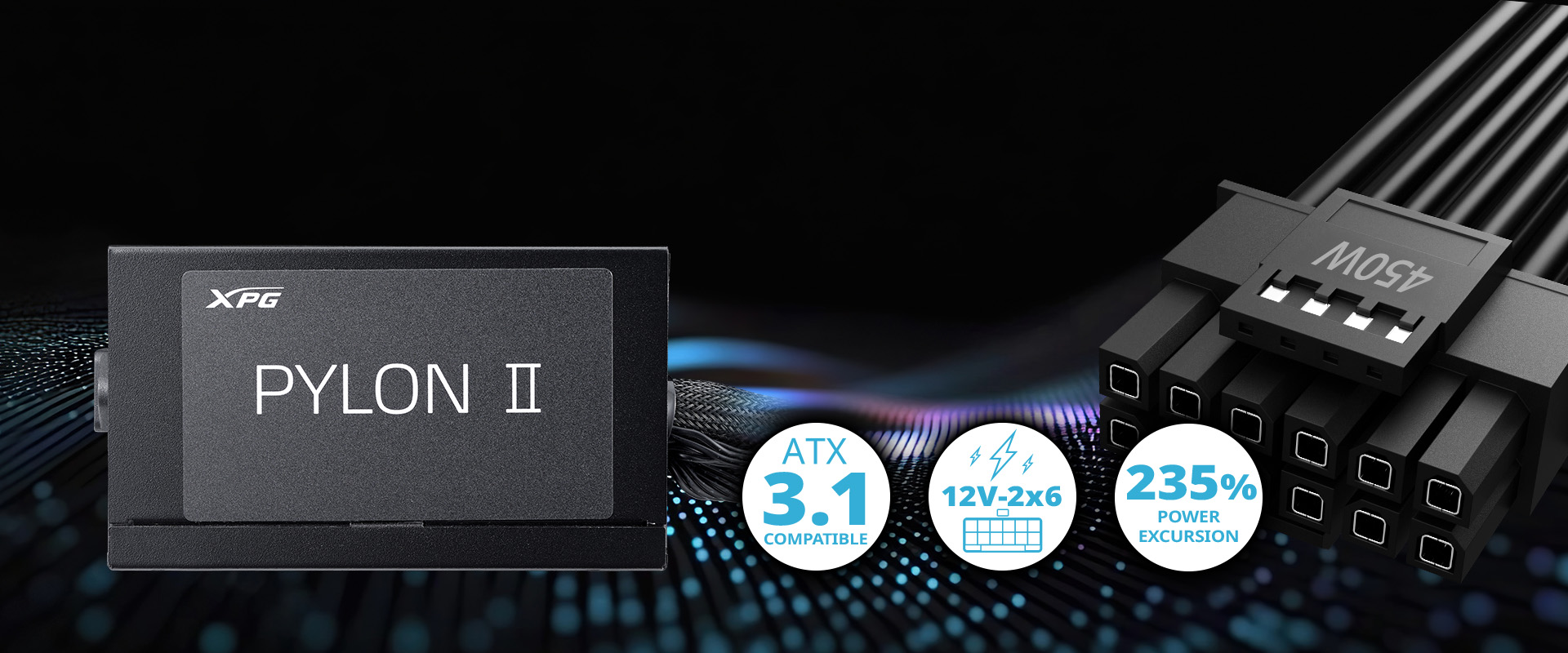 Zasilacz PYLON II jest zgodny z najnowszymi standardami Intel ATX 3.1 i wyposażony w złącze 12V-2x6, dzięki czemu zapewnia zgodność z podzespołami o wysokiej wydajności. Zaprojektowano go tak, aby spełniał zmieniające się wymagania nowoczesnych systemów.