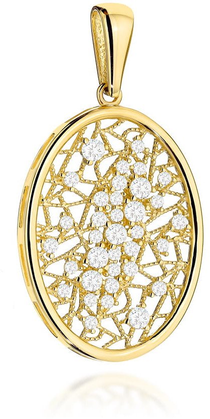 Kamień Z kamieniem Wzór Owal Materiał Złoto Kolor złota Żółte Próba 585 Szerokość [mm] 17,6 Wysokość [mm] 23,7 Wysokość z zawieszką [mm] ok. 33 Precyzyjnie wykonana modna zawieszka próby 585. Doskonała jako ozdoba modnej kreacji, prezent na urodziny, imieniny, Walentynki, Bierzmowanie, pamiątka ważnej uroczystości.