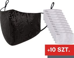 Maska Ochronna z Cekinami Filtr FFP2 N95 PM2.5 Czarna + 10 filtrów