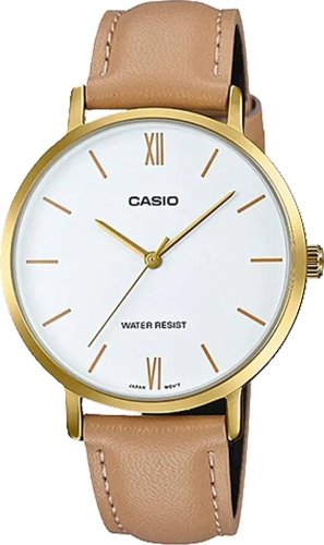 Złota koperta z eleganckim połyskiem doskonale komponuję się z beżowym paskiem wykonanym ze skóry naturalnej, nadając zegarkowi wyjątkowy charakter. Ten model doskonale sprawdzi się zarówno jako dodatek do codziennego stroju, jak i jako subtelny akcent w bardziej formalnych stylizacjach. Zegarek CASIO LTP-VT01GL-7B to połączenie tradycji, precyzji i stylu, które podkreśli wyjątkowy gust każdej noszącej go kobiety.