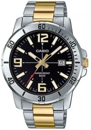 Zegarek męski CASIO MTP-VD01SG-1B to połączenie klasycznej elegancji i nowoczesnej funkcjonalności, które sprawia, że ten czasomierz doskonale sprawdzi się w każdej sytuacji. Ten model to idealny wybór dla mężczyzn, którzy cenią sobie ponadczasowy design i niezawodność w codziennym użytkowaniu. Srebrna, okrągła koperta ze stali szlachetnej nadaje zegarkowi wyrafinowanego charakteru, a jednocześnie zapewnia trwałość i odporność na uszkodzenia. Jej kształt i detale sprawiają, że zegarek doskonale komponuje się zarówno z eleganckimi garniturami, jak i bardziej casualowymi stylizacjami.