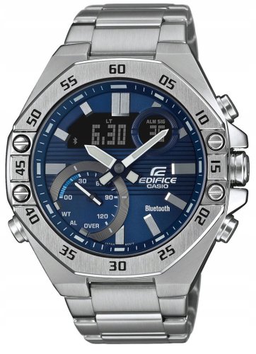 Casio ECB-10D-2AEF to zegarek, który łączy sportowy charakter z nowoczesnym wyglądem. Jego granatowa tarcza z indeksami oraz srebrny pasek ze stali szlachetnej tworzą harmonijną całość, która przyciąga wzrok. To idealny wybór dla aktywnych mężczyzn, którzy cenią zarówno styl, jak i funkcjonalność.