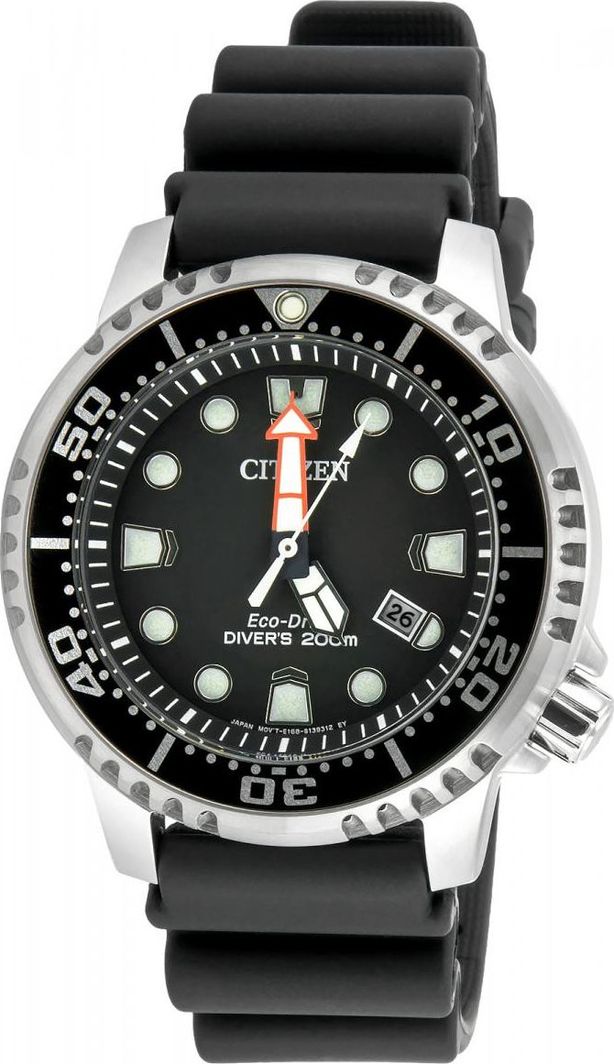 Mechanizm | Caliber E168 | Zegarek męski Citizen Promaster BN0150-10E to połączenie bransolety wykonanej z wytrzymałego tworzywa sztucznego z kopertą wykonaną ze szczotkowanej stali nadaje tej kompozycji sportowego i outdorowego charakteru. Swoim wyglądem zegarek ten przypomina dawne kompasy. Lekko zadziorna budowa ze żłobieniami, zastosowanie figur geometrycznych zamiast cyfr, podziałka minutowa, fluorescencyjne, markery i duże również fluorescencyjne wskazówki w kształcie strzałek, sprawiają, że nie sposób nie doszukiwać się odwołania do urządzeń skazujących kierunki świata.