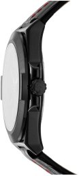 Czarna koperta o średnicy 42 mm, wykonana ze stali nierdzewnej, oraz czarny skórzany pasek doskonale się ze sobą komponują, tworząc elegancki i nowoczesny wygląd. To połączenie klasyki z nowoczesnością sprawia, że zegarek ten jest ponadczasowy i zawsze na czasie.