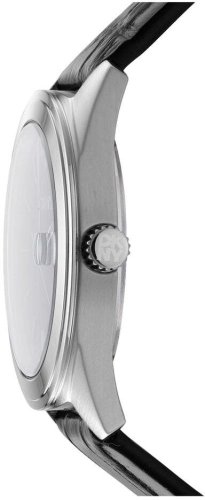 Zegarek wyposażony jest w skórzany pasek w kolorze czarnym, który zapewnia wygodę noszenia przez cały dzień. Jego klasyczny wygląd sprawia, że doskonale komponuje się z różnymi stylizacjami, od casualowych po bardziej formalne.