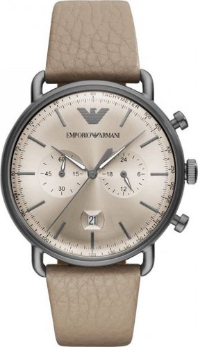 WATCH ARMANI MEN AR11107 (43MM). Type of mechanism: QUARTZ. Display: ANALOGICAL. Material of case: STAINLESS STEEL. Colour of case: GREY. Material of bracelet: LEATHER. Colour of bracelet: BROWN. Dial Colour: BROWN. Glass type: MINERAL. Clousure: BUCKLE. Diameter of dial: 43MM. Submersible: 5ATM