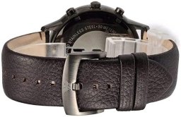 Wygodny skórzany pasek zegarka doskonale przylega do koperty, co zapewnia komfort noszenia przez cały dzień. Jego brązowy kolor harmonijnie współgra z całością, dodając elegancji i stylu.