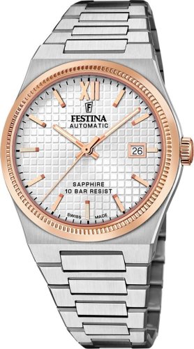 Zegarek FESTINA 20030/1 wyposażony jest w automatyczny mechanizm, który nie wymaga baterii ani nakręcania. Mechanizm napędzany jest ruchem nadgarstka użytkownika i posiada rezerwę chodu do 40 godzin. Mechanizm jest widoczny przez szklany dekiel z tyłu koperty, co pozwala podziwiać jego precyzję i działanie. Mechanizm posiada znak Swiss Made, co świadczy o najwyższej jakości i niezawodności.