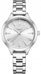 Zegarek Damski Giewont Sapphire Srebrny GW2720-B1 to stylowy dodatek, który harmonijnie łączy subtelną estetykę z klasycznym stylem. Jego smukła tarcza z wyraźnym układem wskazań oraz indeksy z cyrkonii dodają mu delikatnego blasku, co sprawia, że doskonale sprawdzi się zarówno w codziennych, jak i eleganckich stylizacjach. Zegarek osadzony jest na bransolecie ze stali szlachetnej, co zapewnia wygodę noszenia.