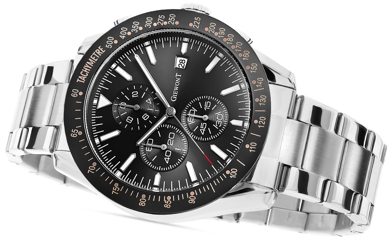 | Giewont GW8620 wyposażony jest w działające chronografy: minut stopera, sekund stopera oraz tryb czasu 24-godzinnego. Dodatkowo posiada datownik dni miesiąca. | |||