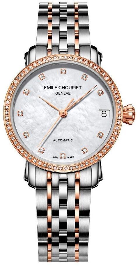 Zegarek damski Emile Chouriet 011168L306982 to doskonałe połączenie klasycznej elegancji oraz szwajcarskiego rzemiosła zegarmistrzowskiego, stworzony z myślą o wymagających kobietach. Model ten wyróżnia się szarym paskiem ze stali nierdzewnej, który nadaje mu wyrafinowany i trwały wygląd, idealny dla osób szukających odpornego i ponadczasowego akcesorium. Biała tarcza zwiększa czytelność, tworząc elegancki kontrast z metalicznym wykończeniem, a szafirowe szkło skutecznie chroni powierzchnię zegarka przed zarysowaniami, zachowując jego nienaganny wygląd w codziennym użytkowaniu.