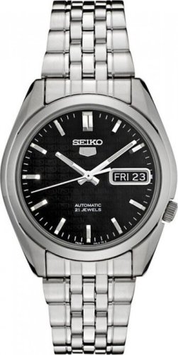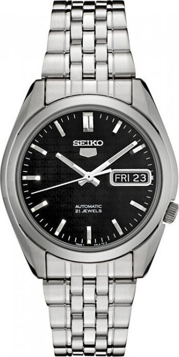 Seiko 5 to męski zegarek automatyczny, który wyróżnia się klasycznym designem i funkcjonalnością. Czarna tarcza doskonale komponuje się z kopertą i bransoletą wykonaną z wysokiej jakości stali nierdzewnej w kolorze srebrnym, nadając całości uniwersalnego i eleganckiego charakteru.