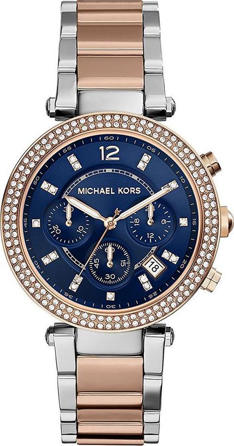 zegarek MICHAEL KORS damski MK6141 (39MM). Typ mechanizmu: QUARZT. Wyświetlacz: Analogowy. Materiał obudowy: STAINLESS STEEL. Kolor koperty: PINK GOLD. Materiał bransoletki: STEEL. Kolor bransoletki: SILVER-PROSE GOLD. Dial Colour: BLUE. Glass type: MINERAL. Clousure: PRESSURE. Diameter of dial: 39MM. Submersible: 10ATM