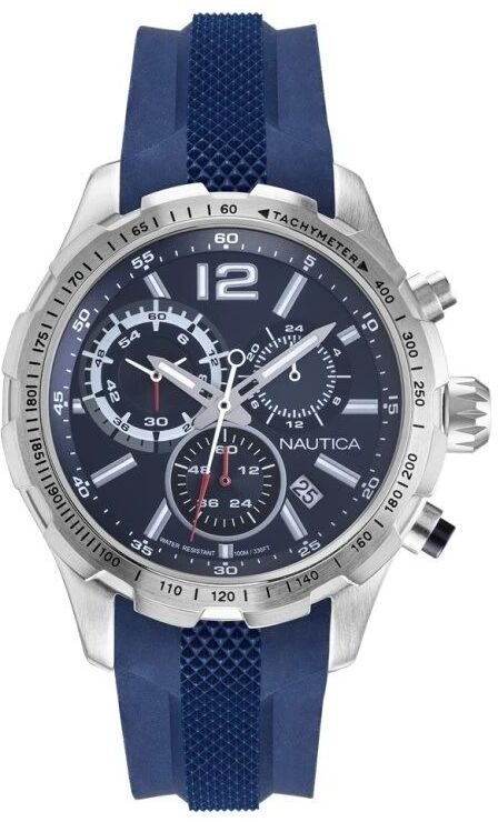 Model NAPLECR02 wyróżnia się sportowym charakterem oraz marynistycznym stylem. Granatowa tarcza z dużą cyfrą "12" zapewnia doskonałą czytelność, co jest niezwykle ważne w każdej sytuacji. Dodatkowo, trzy sub-tarcze chronografu dodają technicznego sznytu, podkreślając nowoczesny wygląd zegarka.