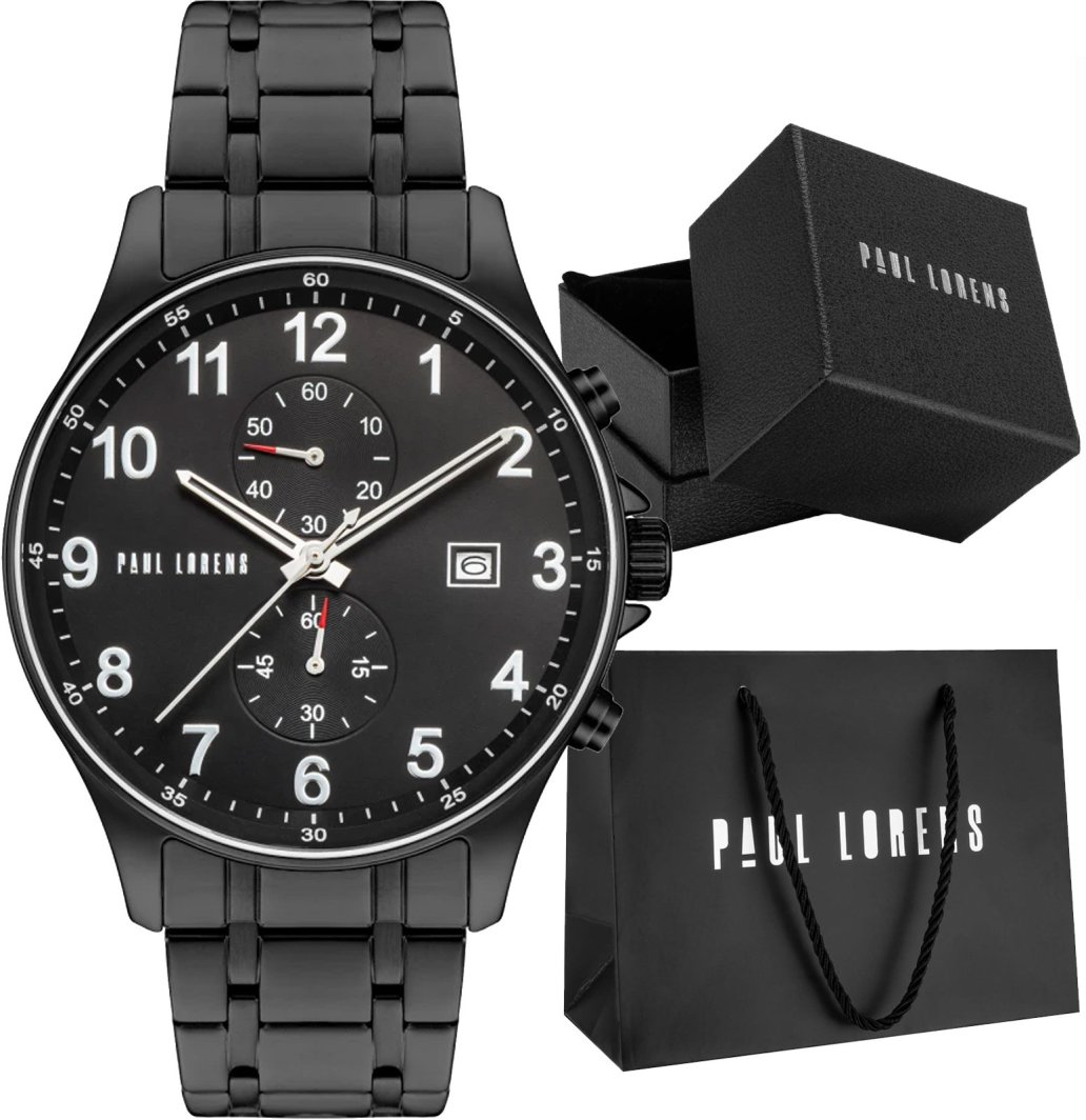 Zegarek Paul Lorens Zegarek męski czarny elegancki na bransolecie GHOST PL20002B-1A5