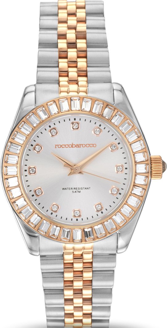 Zegarek damski RoccoBarocco RB.0996L-04M przeznaczony jest dla kobiet które cienią sobie eleganckie dodatki. Zegarek RoccoBarocco RB.0996L-04M w kolorze srebrnym / rosegold zdobiony cyrkoniami na srebrnej tarczy. Zegarek RoccoBarocco RB.0996L-04M został wyposażony w precyzyjny mechanizm kwarcowy.