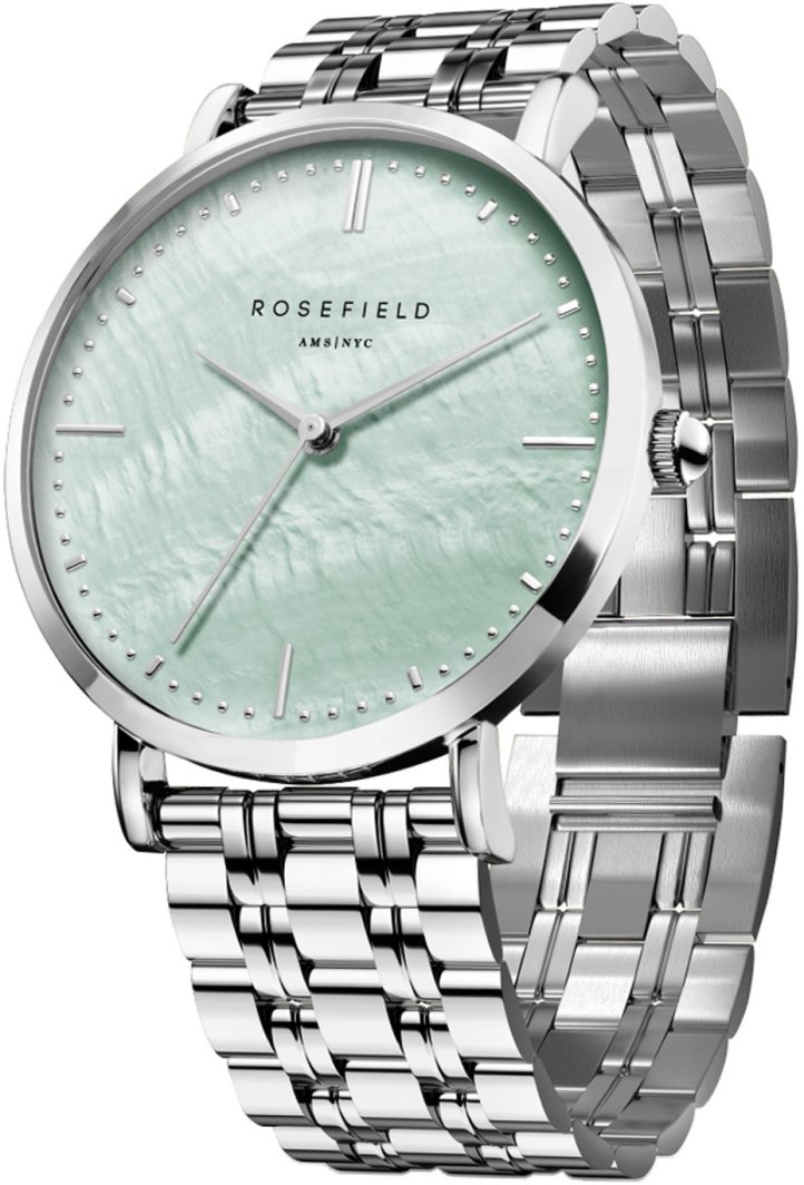Miętowy cyferblat z masy perłowej to nie tylko piękny, ale i elegancki detal, który wyróżni Cię w tłumie. Zegarek Rosefield Upper East Side UGSSS-U38 to doskonały wybór dla kobiet, które cenią sobie styl i klasę.