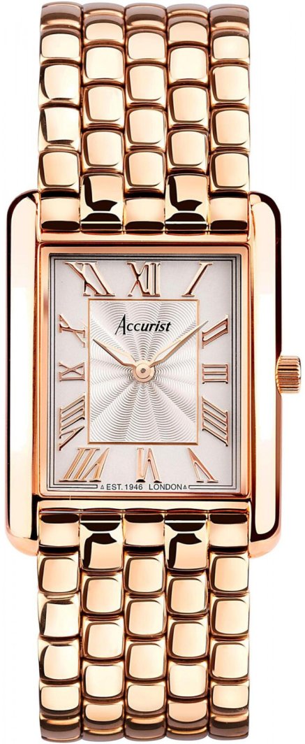 Zegarek damski Accurist 71011 to znakomity wybór dla kobiet, które cenią sobie elegancję oraz styl. Jego unikalny design w odcieniu różowego złota sprawia, że doskonale komponuje się zarówno z codziennymi, jak i wieczorowymi stylizacjami. Prostokątna koperta o szerokości 26 mm oraz bransoleta ze stali nierdzewnej podkreślają nowoczesny charakter tego czasomierza.