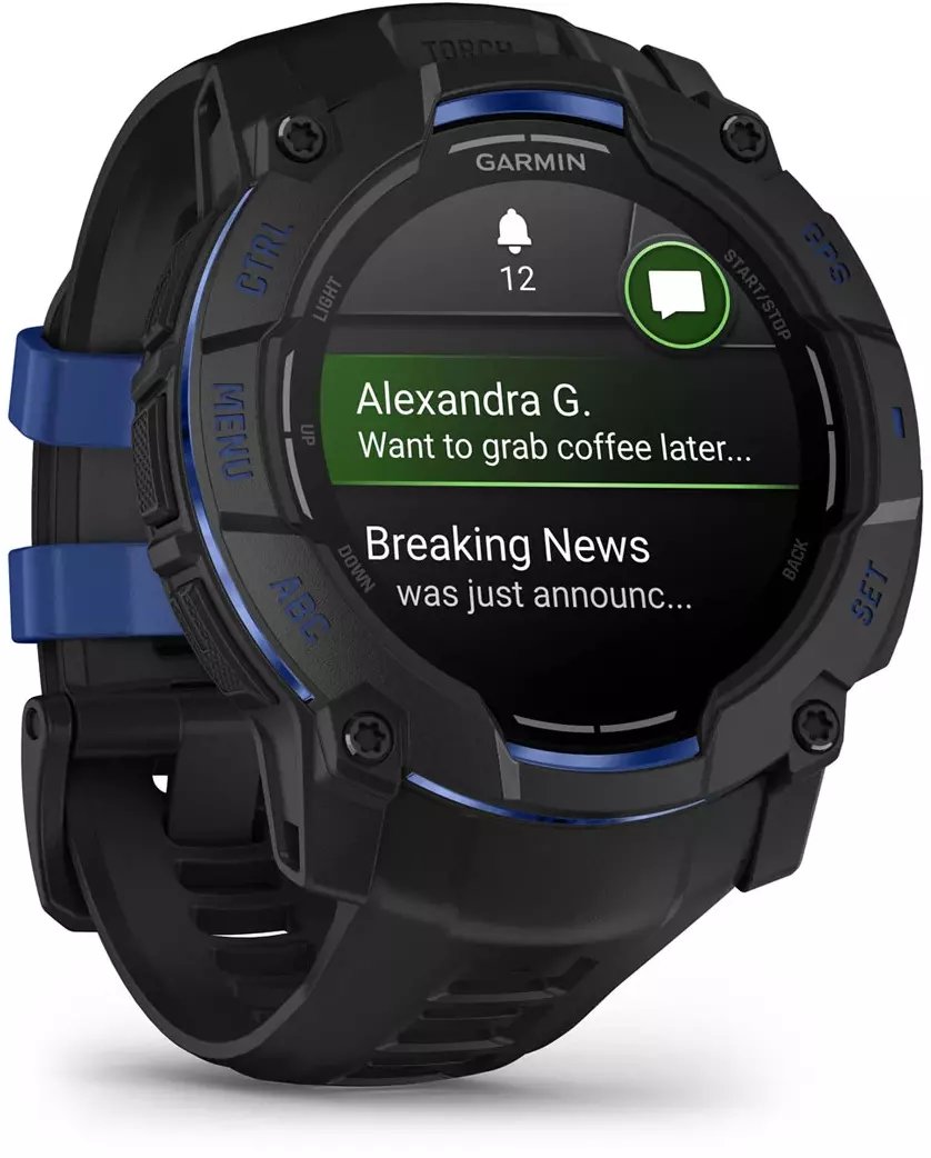Dzięki powiadomieniom z telefonu (iOS i Android), funkcji Garmin Messenger™, LiveTrack oraz Garmin Pay™, zegarek staje się Twoim osobistym centrum komunikacji i płatności. Możesz rozmawiać, płacić i być w kontakcie - nawet w odległych miejscach.