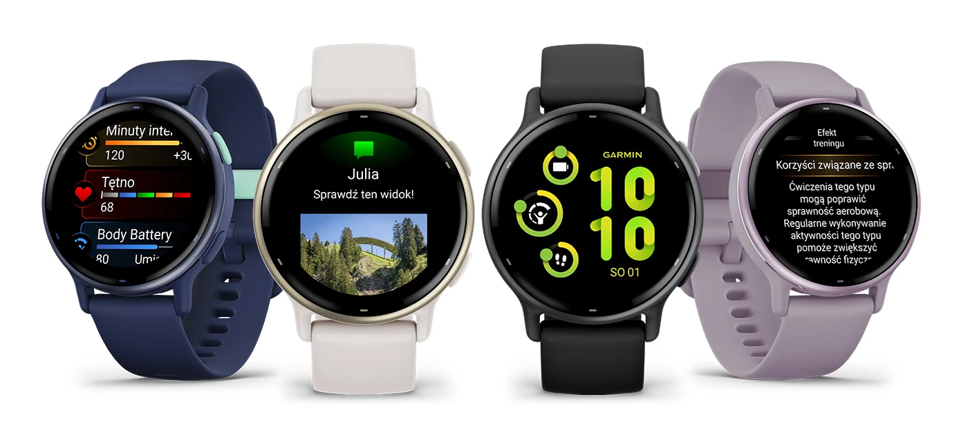Zegarek vívoactive® 5 to osobisty trener na nadgarstku, zaprojektowany do wspierania Twoich celów zdrowotnych i kondycyjnych. Wyposażony jest w jasny, dotykowy wyświetlacz AMOLED o przekątnej 1,2 cala i oferuje długi czas pracy baterii, sięgający 11 dni w trybie zegarka. Łączy zaawansowane funkcje fitness ze szczegółowymi informacjami na temat zdrowia i samopoczucia. Współpracuje z aplikacją Garmin Connect™ na smartfonach iPhone® i Android™, oferując również funkcje online, takie jak płatności zbliżeniowe Garmin Pay™ oraz sterowanie muzyką.